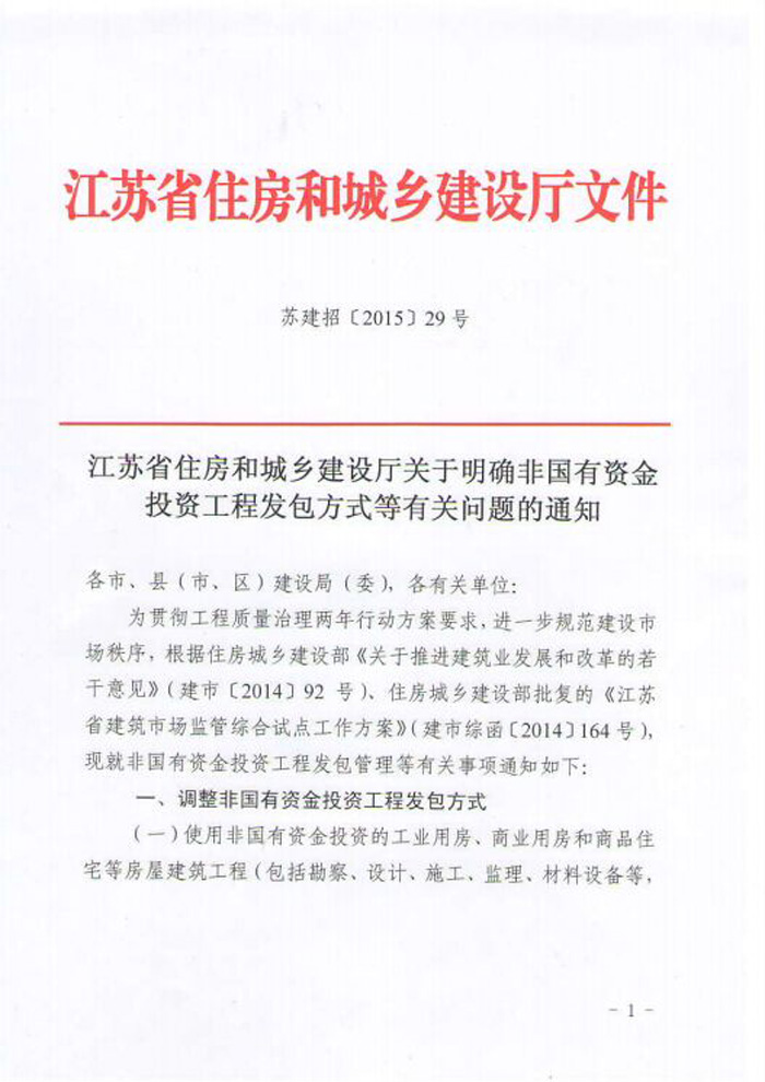 江蘇省住房和城鄉(xiāng)建設(shè)廳關(guān)于明確非國有資金投資工程發(fā)包方式等有關(guān)問題的通知