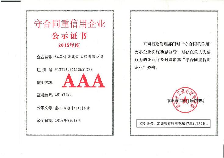 熱烈祝賀我公司評(píng)為2015年度“守合同,重信用”企業(yè)